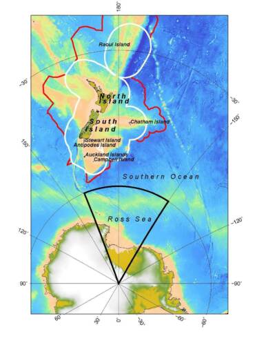 Aotearoa-New Zealand’s land area is just 268,831 km2. But this modest presence in the mid-latitudes belies a much larger marine realm of almost 6 million km2 over which NZ has sovereignty as defined by the United Nations Convention on the Law of the Sea. South of this realm, Aotearoa-NZ has stewardship (but not sovereignty) over ~450,000 km2 of ocean, ice and land of the Ross Dependency. Overall, marine Aotearoa-NZ encompasses subtropical to polar climates, intercepts global ocean currents and is sheared by a major tectonic plate boundary. Such dynamism underpins the claim that the region is a remarkable laboratory to determine how the natural world functions.