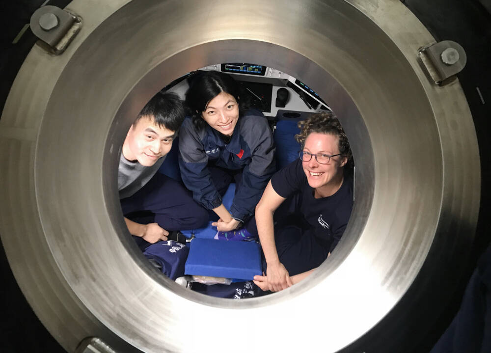 On November 4th, a first dive to the Scholl Deep was undertaken by Dr Kareen Schnabel from the New Zealand National Institute of Water & Atmospheric Research (NIWA) and two submersible pilots (Ms Yuqing Deng and Mr Xin Yuan) from the Institute of Deep-Sea Science and Engineering (IDSSE), who spent six hours exploring the Scholl Deep and the adjacent western slope of the trench. This was the first time a female scientist had reached the deepest point of this trench.